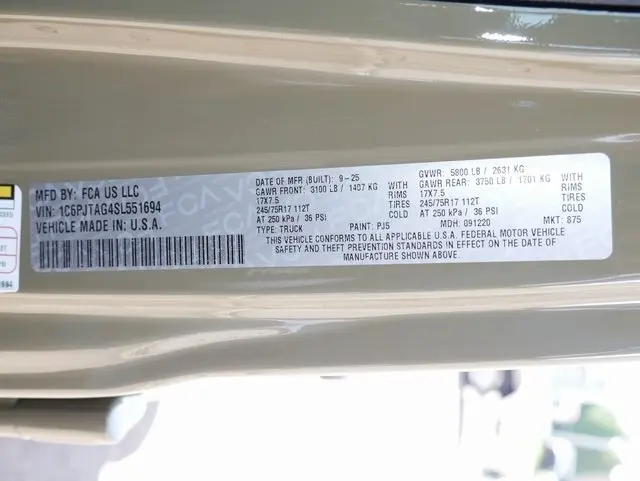 Miles: 9 • VIN: 1C6PJTAG4SL551694 • Stock #: 3514